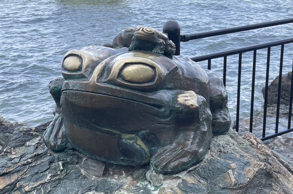 敷地内にはかえるの像が何体か置いてあったのですが、江戸時代は「一生に一度はお伊勢参り」と言われるように主に歩きでの移動だったため、ここまでたどり着くことも難しい時代だったこともあり、無事にかえるという願掛けの意味合いもあったそうです。
