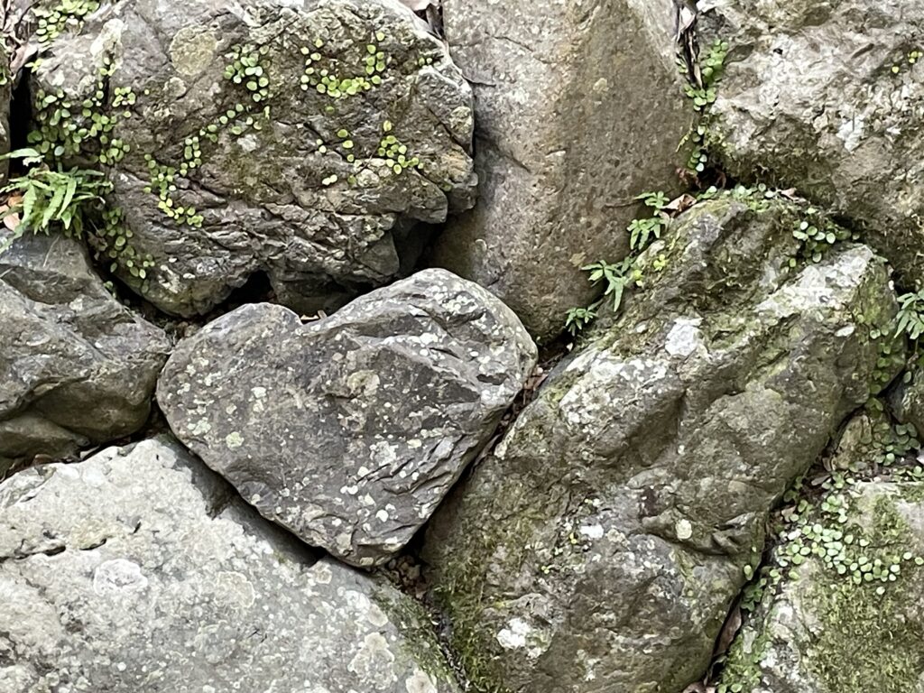 下の右側の写真は多賀宮へ行く途中の石垣ですが、ハートの石垣があります。